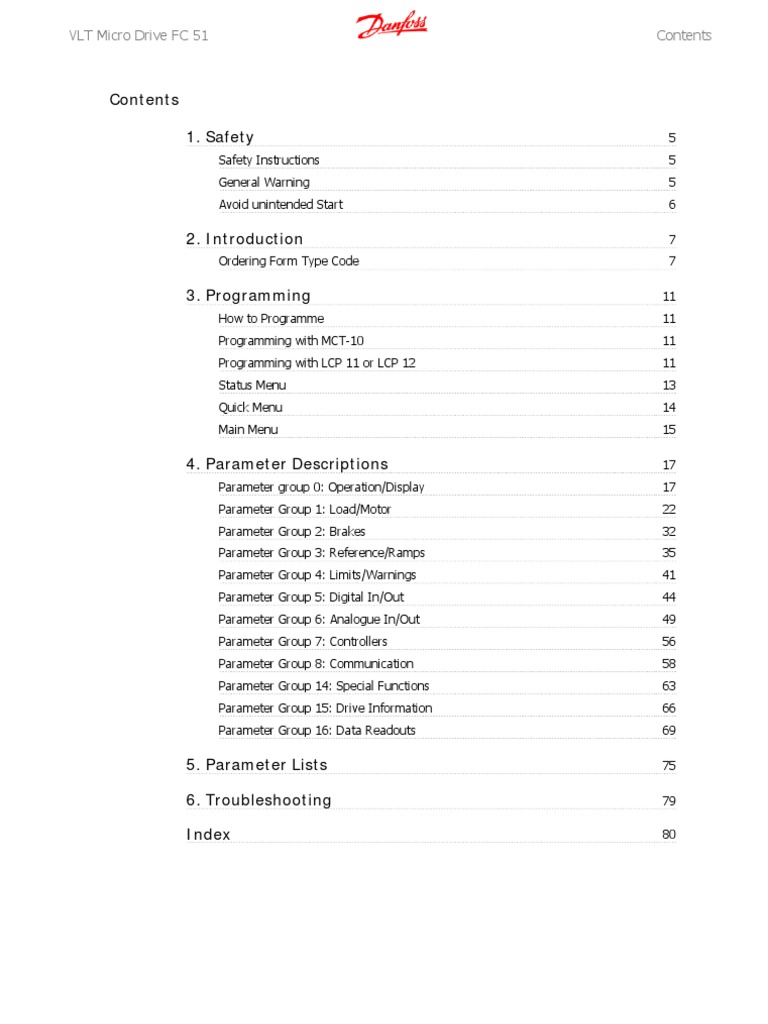 VLT Micro Drive FC 51 Instruction Manual Contents